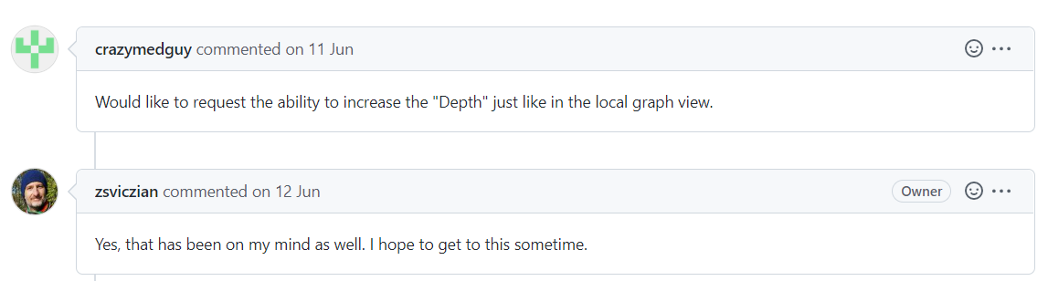 출처: ExcaliBrain is transforming how I use Obsidian.md - YouTube 에 달린 어떤 질문에 대한 개발자의 답변